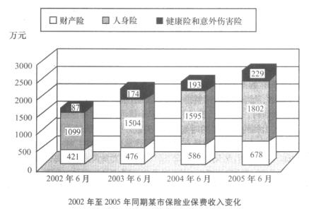 121.该市2005年6月的总保费收入比去年同期约增长了( )。