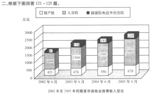 121.该市2005年6月的总保费收入比去年同期约增长了(    )。
