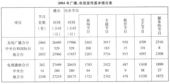 D.地方无线广播电台2004年平均每天每套节目播出自办教育节目0.446小时