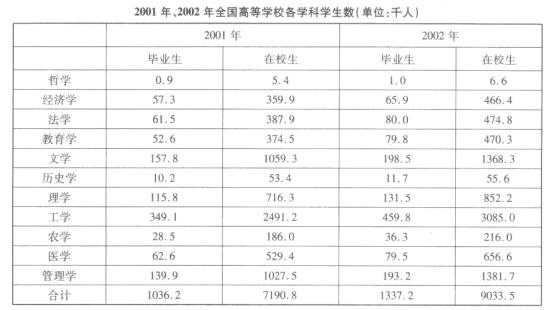 117.2002年与2001年相比,毕业生增长率最大的学科是( )。