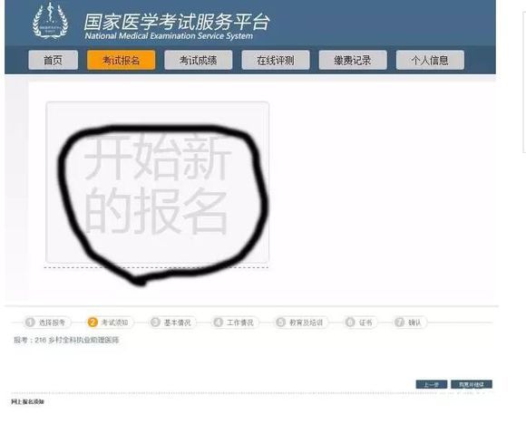 登录完成后,我们点击“考试报名”菜单,会出现如下界面,紧接着点击“开始新的报名”