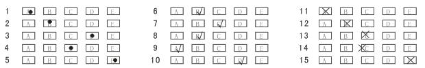 2、选择题作答时,要用2B铅笔填涂,对照试题上的题号将该题所选答案涂黑涂满;若需对答案进行修改,用橡皮擦擦除干净后再重新填涂,注意不要擦破答题卡。修改时不可使用涂改带或涂改液。
