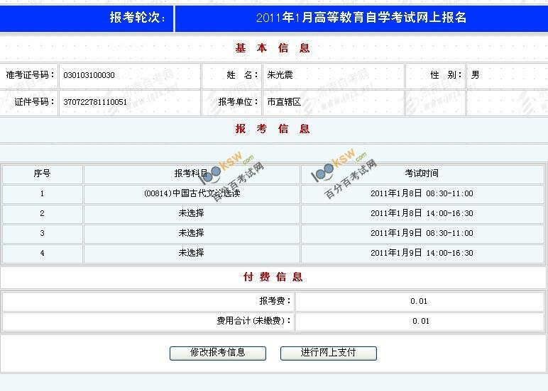 第二步:核对个人基本信息及报考信息,如信息无误则点击“进行网上支付”。