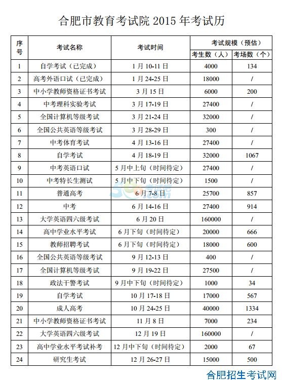 2015年10月安徽合肥自考时间:10月17日-18日。